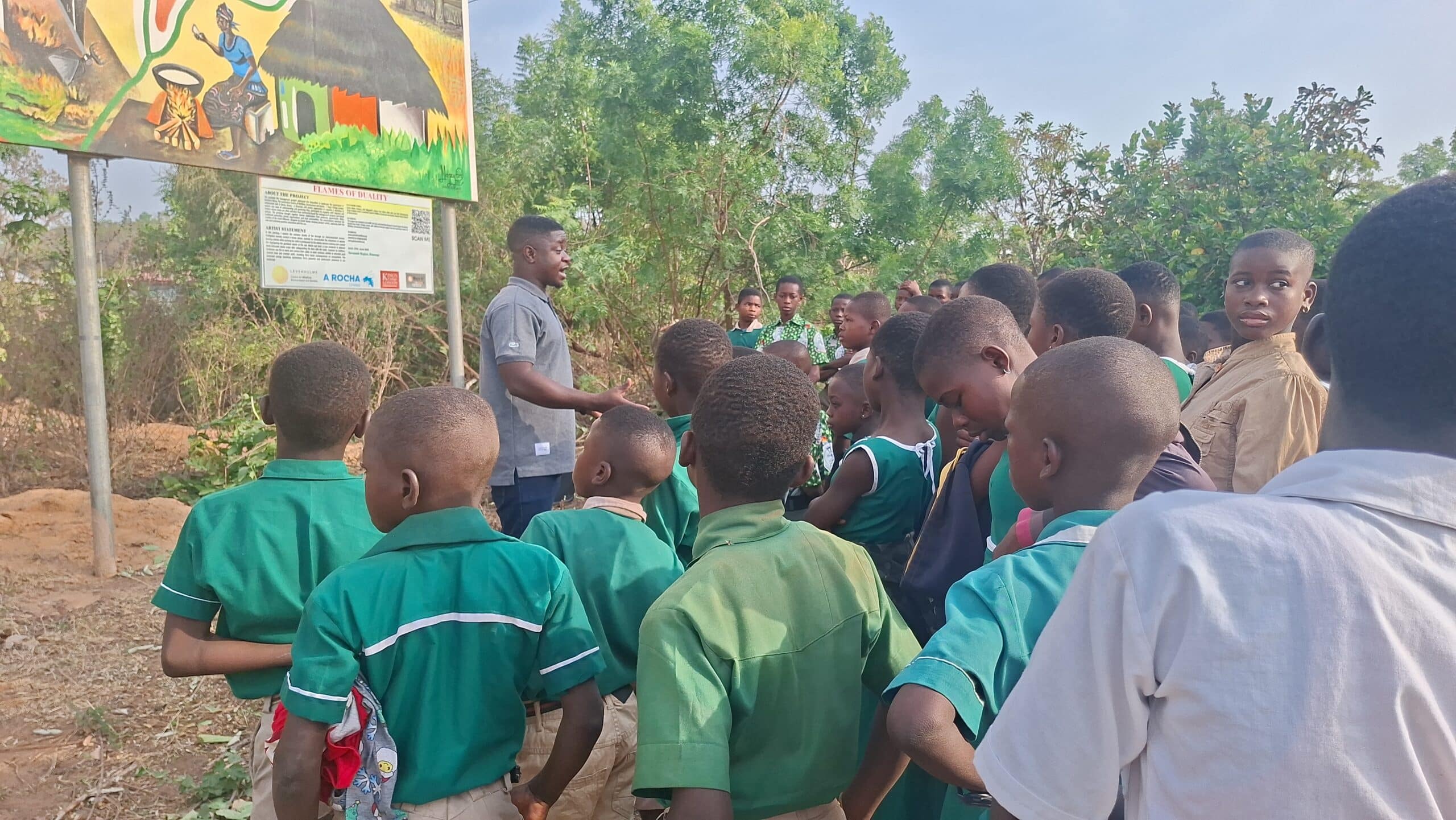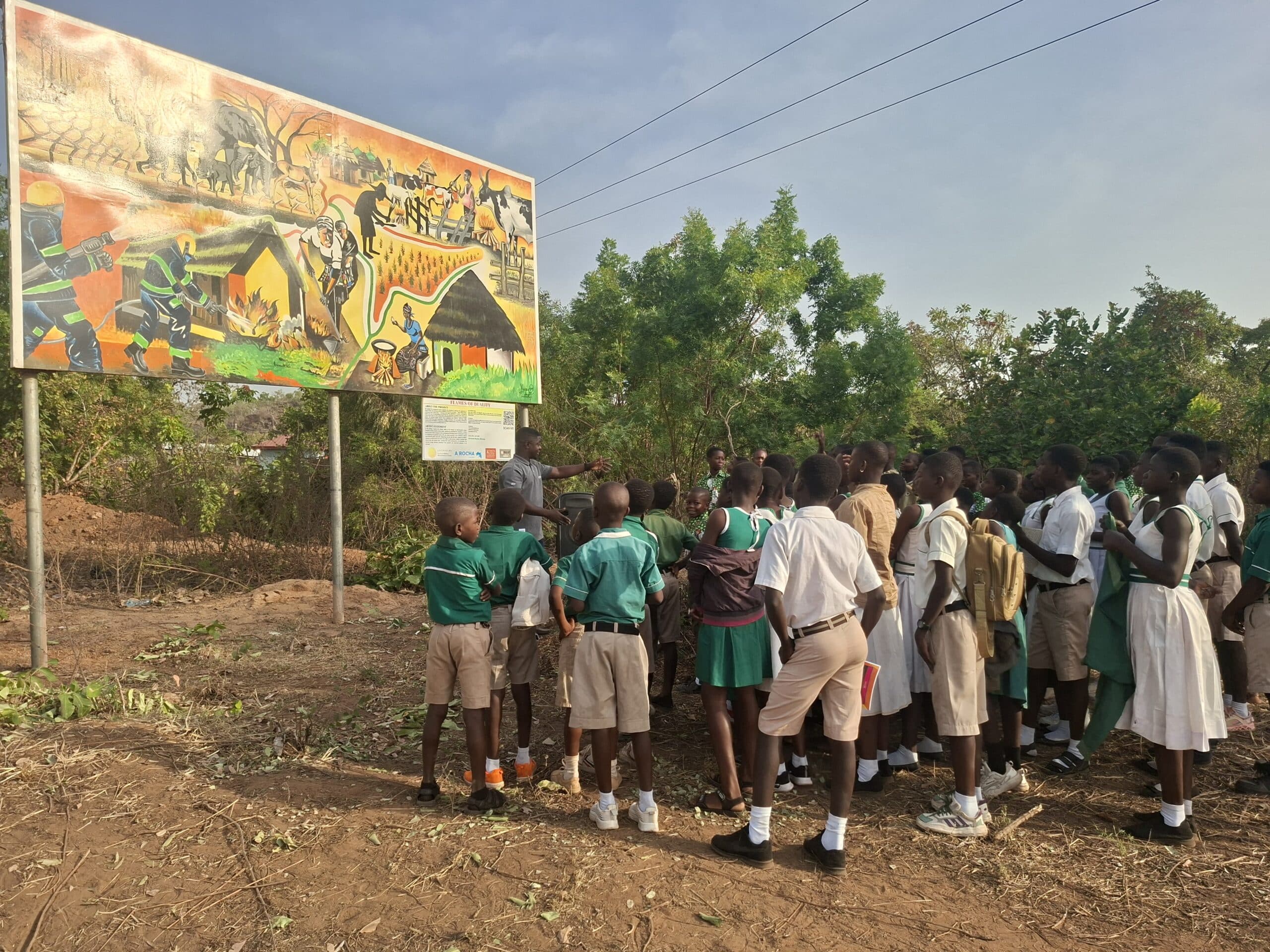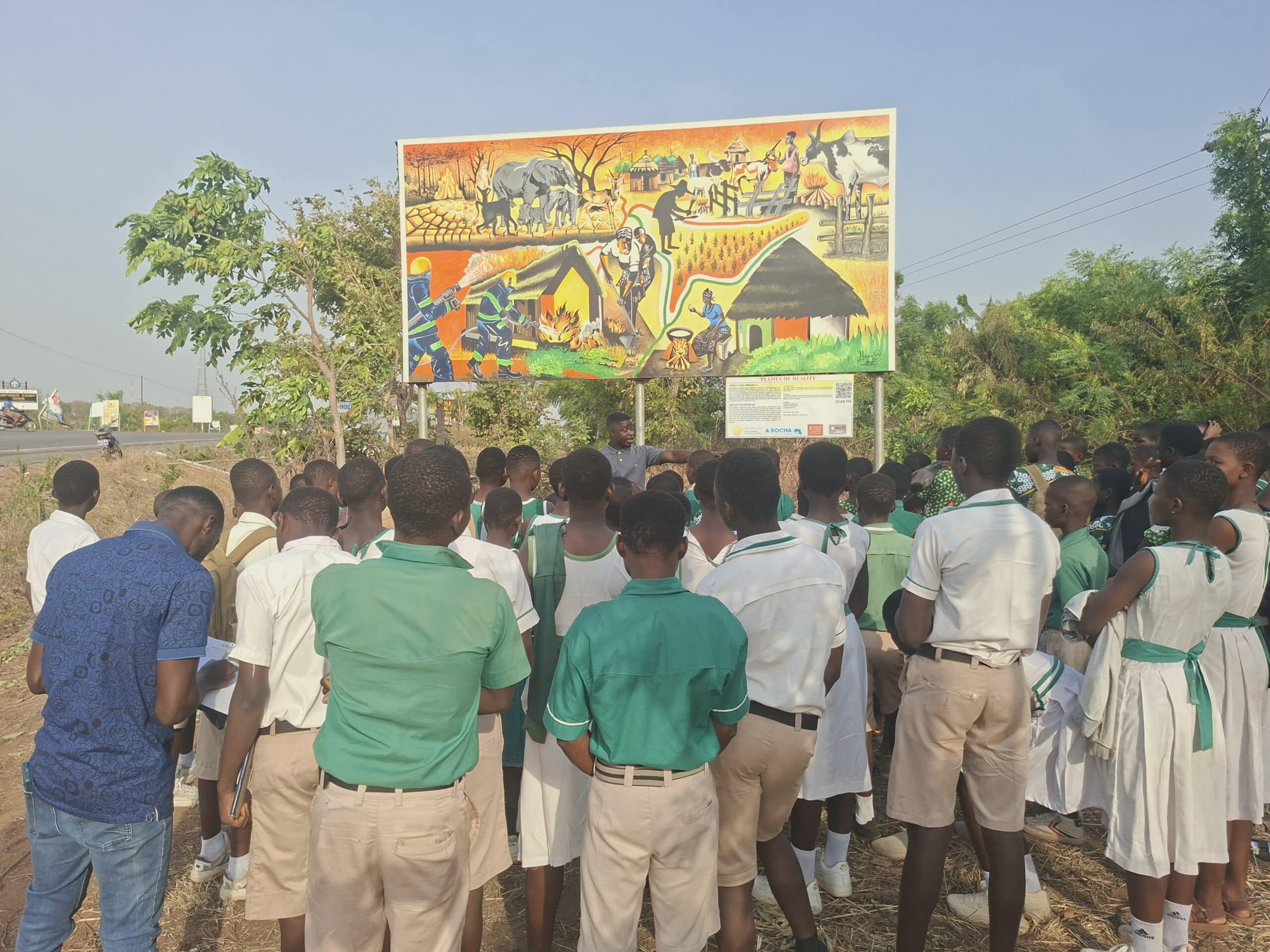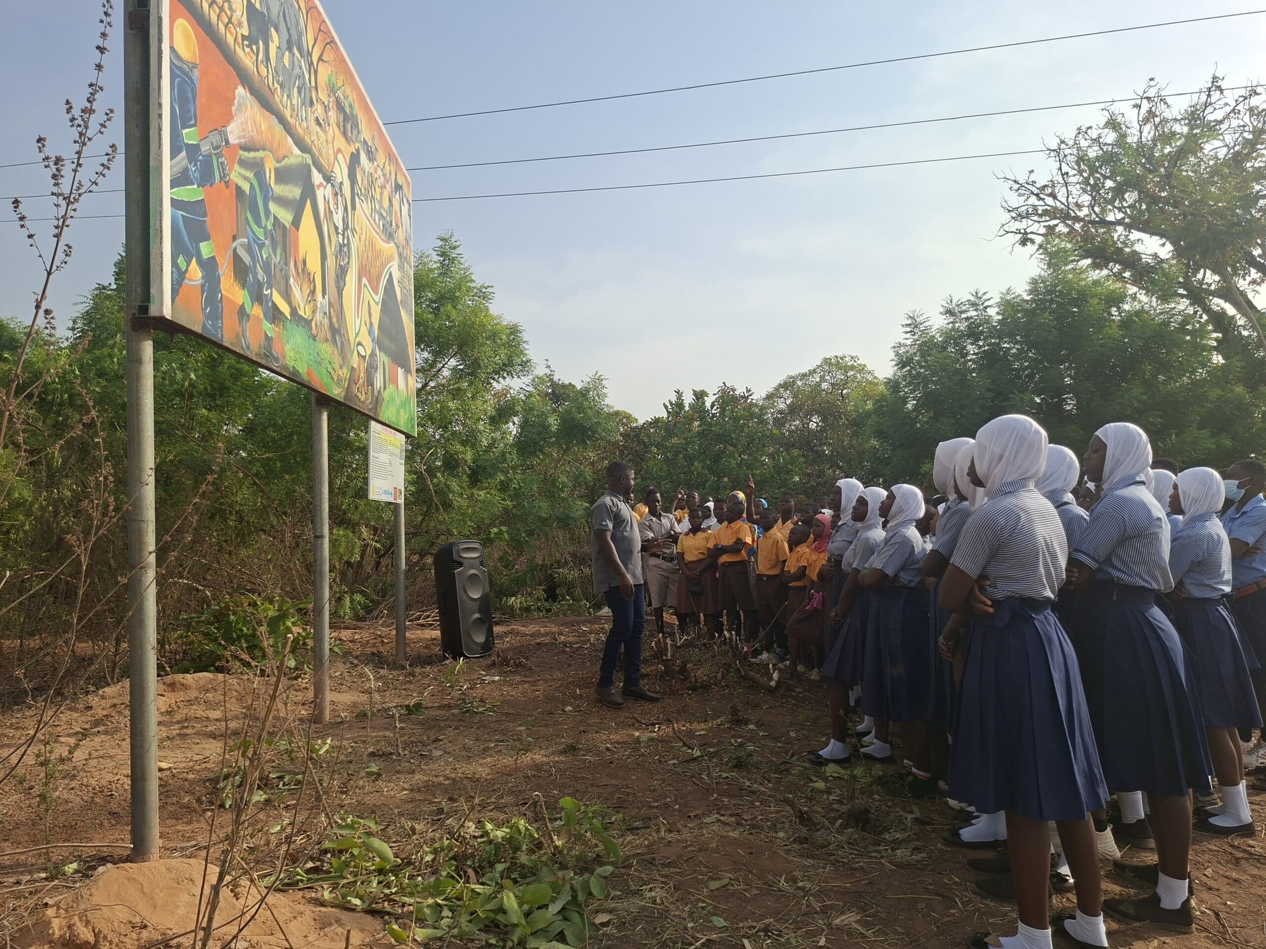 On 24 January 2026, learning stepped beyond the classroom for 240 pupils from 12 Primary and Junior High Schools across the West Gonja Municipality. Their destination was a striking public artwork in Damongo, a mural that tells an important story about fire, people, and the savannah landscape.